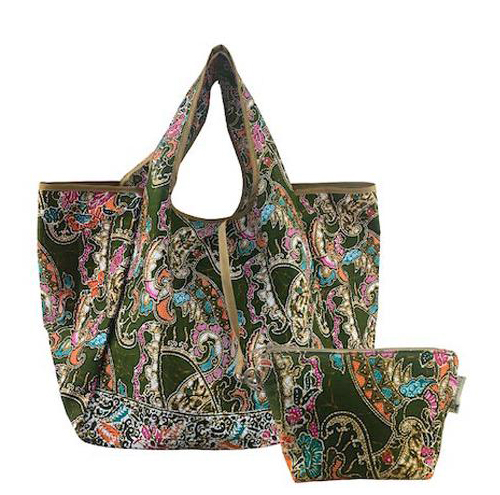 กระเป๋าพับเก็บได้ใบใหญ่ใส่ของได้จุมาก พร้อมกระเป๋าใบเล็กลายเดียวกัน